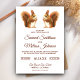 Éblouissez vos invités avec ce faire-part de mariage cool avec de mignons écureuils faisant face l'un à l'autre avec une typographie moderne contre un arrière - plan blanc. Ajoutez simplement les détails de votre événement sur ce modèle facile à utiliser pour en faire une invitation unique. Retournez la carte pour révéler une texture d'aquarelle brune au dos de la carte.