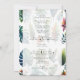Cette carte de faire-part de mariage présente un thème de plage serein aux accents de feuillage tropical, invitant à l'union de Roberta Levinson et Jhon Nickson. L'élégante écriture et les tons chauds ont ouvert la voie à une cérémonie balnéaire mémorable. Des fleurs délicates dans les tons rose et violet, ornées de feuillage vert, créent une atmosphère enchanteresse. La transition d'une teinte rosâtre en haut à un ton bleu serein en bas ajoute à l'aspect éthéré.