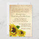 Jolie reproduction antique, avec des graphiques de papier vieilli et de jolies fleurs de tournesol, en bas, à gauche.Le texte Brown et vert foncé est prêt à être personnalisé pour votre mariage. Belle invitation pour un printemps, un été ou un Mariage de automne.