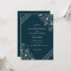 Invitation de mariage avec des lis blancs simples et beaux dessinés à la main et des lignes blanches diagonales sur fond bleu foncé. Les lis et les lignes sont situés dans les coins supérieur et inférieur