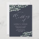 Une aquarelle peinte de verdure encadre vos détails mariages dans notre collection de mariages Winter Sage. L'élégant design comprend un riche arrière - plan bleu marine avec un feuillage botanique vert pâle glacé et des lettres blanches avec des accents calligraphiques manuscrits.