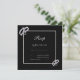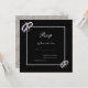 Faire-part de mariage moderne élégant et stylé en argent et noir. Avec un cadre scintillant en argent élégant encadrant vos détails d'événement, sur fond noir, avec des décorations d'angle en anneaux de mariage en diamant scintillants. Tout le texte est entièrement personnalisable pour répondre à vos besoins. Si vous avez besoin d'aide pour personnaliser votre produit, ou si vous souhaitez des produits assortis, veuillez me contacter via ma boutique et je serai ravi de vous aider.
