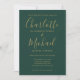 Avec des noms de style signature, cette élégante invitation de mariage peut être personnalisée avec vos informations en lettres d'or chic sur un arrière - plan vert émeraude. Conçu par Thisisnotme©