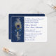 Faire-part de mariage chic à thème paon, avec de jolis graphismes d'un ton argenté fleurissent, sur le côté gauche, avec un oeil coloré d'une plume de paon et trois petites perles et arc bleu, contre un bleu sur damas bleu. Le texte en bleu, contre un arrière - plan blanc sur le côté droit de la carte, est prêt à être personnalisé pour votre jour de mariage. Produits correspondants disponibles.