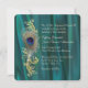 Chic turquoise satin à l'aspect faire-part de mariage carré, avec de beaux graphismes d'un ton or fleurissent sur le côté gauche avec un oeil coloré d'une plume paon et trois petites perles. Le texte en blanc cassé est prêt à être personnalisé pour votre jour de mariage. Produits correspondants disponibles.