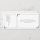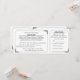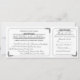 Cette invitation de mariage imprimée dans le style d'un billet vintage en noir et blanc classique incorpore également une carte-réponse RSVP détachable. Des cadres simples aux coins arrondis sont accentués de délicats motifs de feuilles ornementaux et vintage. Les noms de la mariée et du marié ainsi que le titre de la réponse RSVP sont également mis en valeur avec des motifs décoratifs. Au verso, l'adresse de retour peut être ajoutée à la réponse RSVP et d'autres détails sur le mariage à la partie invitation. La ligne de coupe pour la carte-réponse est indiquée au dos de l'invitation par une ligne pointillée pâle et une image de ciseaux.