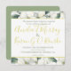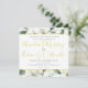 Faire-part de mariage moderne avec des fleurs de cornouiller en aquarelle douce de vert sauge, gris et ocre jaune.