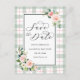 Cette carte de faire-part de mariage présente des fleurs peintes à l'aquarelle dans des tons rose pâle, blanc et feuillage vert sur un fond à carreaux pastel à l'aquarelle. Pour une personnalisation plus avancée de ce design, veuillez cliquer sur le bouton "Personnaliser". Des articles assortis sont également disponibles.