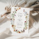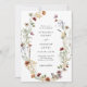 Cette invitation de mariage élégante et élégante présente de magnifiques fleurs sauvages d'aquarelle peints à la main, disposés comme une belle couronne parfaite pour le printemps, l'été ou les mariages de automne. Recherchez les éléments correspondants dans la collection de Mariages de Fleur sauvage Boho Blanc.