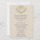 Véritable invitation de mariage élégante, ce design présente des lettres monogrammées en noir (bien que vous puissiez choisir n'importe quelle autre couleur avec personnalisation) disposées dans une belle décoration dorée posée sur un arrière - plan de beige avec un motif légèrement flou. Ce joli faire-part mariage peut être personnalisé très facilement avec vos propres noms, dates et autres informations pertinentes. Si vous préférez, vous pouvez supprimer complètement les initiales monogrammées - ou même ajouter vos propres informations ou images. Même si vous ne cherchez pas d'invitations à un mariage, vous pouvez customiser les informations pour toutes les occasions, comme les fêtes de fiançailles, les anniversaires, les fêtes d'anniversaire, etc. Instructions pour personnaliser votre invitation : Il suffit de taper vos propres informations dans chaque zone de texte (ci-dessus, à droite, sous ''Personnalisez-le"). Lorsque vous avez terminé de modifier chaque section, cliquez n'importe où en dehors de la zone pour passer à la section suivante. Vous pouvez voir votre progression à tout moment en faisant glisser votre souris sur la grande image d'aperçu qui vous donnera une vue agrandie.