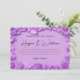 Faire-part de mariage horizontal moderne inspiré de barbiecore avec un cadre de fleurs en papier découpé 3d simulé monochrome violet