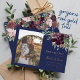 Ces magnifiques faire-part à la feuille d'or rose sont parfaits pour votre mariage élégant avec du bleu marine et des fleurs. Modifiez facilement le texte et ajoutez votre photo en utilisant le modèle simple. Découvrez la boutique d'EmmyINK pour des invitations, de la papeterie et des décorations assorties à la feuille d'or rose !