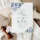 faire-part de mariage bleu poussiéreux, aquarelle bohème, fleurs bleues poussiéreuses et élégant script de lettrage noir. Customisez le texte et les couleurs.