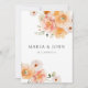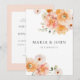 Célébrez votre jour spécial avec cette invitation de mariage florale Boho Peach et Blush, mettant en vedette des fleurs aquarelles douces dans des tons romantiques pêche et rose pour un look chaud et élégant. Cette invitation de mariage double face présente les noms des mariés aux côtés de chiffres romains élégants sur le devant, tandis que le verso comprend les détails du mariage tels que la date, l'heure et le lieu. Parfaite pour les thèmes de mariage boho, jardin, rustique et romantique, cette invitation est entièrement personnalisable pour créer une suite de papeterie cohérente et intemporelle.