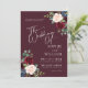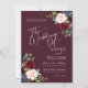 Boho Burgundy et Blush Floral Faire-part de mariage. Cette invitation est caractérisée par des roses boho bordeaux et rougis et des fleurs avec deux polices de haute classe modernes qui façonnent les tendances des événements festifs actuels et futurs.