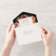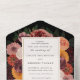 Faire-part de mariage tout-en-un avec un cadre doré entouré de fleurs et de verdure automnales. Chaque carte comprend une carte de réponse perforée qui est adressée et prête à être renvoyée par la poste par vos invités. Personnalisez avec vos informations ou cliquez sur "cliquez pour personnaliser davantage" pour changer le style de police, la taille, la couleur ou la couleur de fond.