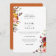 Elégante aquarelle colorée Aménagements floraux et feuillage d'automne, faire-part de mariage. Modèle de style design de typographie moderne et simple. Le dos de la carte est compatible avec la couleur orange brûlée.