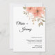 Il s'agit d'un joli faire-part de mariage corallien et vert fleuri, parfait pour les mariages rustiques, les mariages campagnards et les mariages dans le jardin. Le sommet de l'invitation est rempli de fleurs de corail entourées d'une végétation luxuriante. Les noms des mariés et des mariés sont à l'avant et au centre de cette faire-part de mariage simple mais moderne.