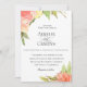 L'aquarelle fleurit dans une palette de couleurs poussiéreuse chic de coucher du soleil de rouge, d'orange, pêche et jaune avec les branches botaniques, faire-part de mariage. Customisez le texte, le style de police, la couleur et la taille. La couleur de support montrée dans l'orange poussiéreuse peut être aussi bien customisée.