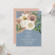 Invitation vos invités avec ce faire-part de mariage floral bleu croustillant, avec un agencement captivant de rose vif, roses d'ivoire et verdure luxuriante. L'arrière - plan bleu roux et le design floral romantique font de cette invitation une invitation idéale pour les mariages rustiques, boho ou jardin. Customisez-le facilement avec vos détails mariages pour une touche vraiment personnalisée.