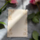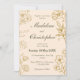 Ce faire-part de mariage classique aux motifs floraux de toile est parfait pour les mariages avec un thème classique français.