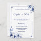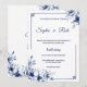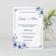 Faire-part de mariage moderne moderne et classique aux fleurs bleu marine. Style classique minimaliste.