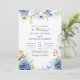 Faire-part de mariage florale moderne bleu et or