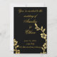 Apportez une élégance intemporelle à votre grand jour avec ce faire-part de mariage floral noir et or. Doté d'une délicate ligne d'art botanique en or sur un arrière - plan noir profond, ce design mêle romantisme et sophistication. Personnalisez facilement avec vos noms, votre date de mariage, votre lieu de rendez-vous et vos détails grâce à l’éditeur de Zazzle. Idéal pour des soirées romantiques, des mariages formels, des thèmes rustiques de luxe ou des fêtes de jardin chic. Paire avec les cartes RSVP correspondantes, Enregistrer la date et Merci pour compléter votre ensemble de papeterie mariage.