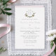 Un faire-part de mariage à la main, feuilleté, avec un monogramme "C" encadré par deux inséparables nichés sur des branches de fleur d'oranger. La fleur d'oranger est un symbole de longue date d'amour et de fidélité et a été la fleur choisie par la reine Victoria pour orner ses cheveux le jour de son mariage, si littéralement "adaptée à une reine". Intemporel, charmant et sûr de faire sourire vos invités mariages.