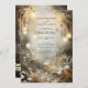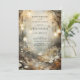 Un faire-part de mariage magique avec une forêt enchantée, où la lumière éthérée filtre à travers les arbres, jetant une lumière douce et mystique. La canopée au-dessus est ornée de lanternes scintillantes, et le sol en contrebas est rempli de fleurs. Vos informations de mariage sont placées sur une superposition translucide avec une élégante police de caractères. Parfait pour un mariage de printemps ou d'été, ou à tout moment de l'année. Ce design est disponible en version imprimée, en téléchargement numérique ou les deux !