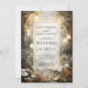Un faire-part de mariage magique avec une forêt enchantée, où la lumière éthérée filtre à travers les arbres, jetant une lumière douce et mystique. La canopée au-dessus est ornée de lanternes scintillantes, et le sol en contrebas est rempli de fleurs. Vos informations de mariage sont placées sur une superposition translucide avec une élégante police de caractères. Parfait pour un mariage de printemps ou d'été, ou à tout moment de l'année. Ce design est disponible en version imprimée, en téléchargement numérique ou les deux !
