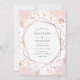 Faire-part de mariage tendance avec éclaboussures aquarelle et cadre en or rose géométrique et inversé.
