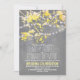 Faire-part de mariage rustique avec des lampes à cordes étincelantes accrochées aux branches d'arbres en fleurs. Shabby et une typographie amusante et élégante. Design moderne de papier vieilli texture arrière - plan gris et jaune couleurs. Si vous avez un mariage extérieur moderne ou rustique dans le jardin, la campagne avec un arbre - cet invitation est juste un choix parfait pour vous. : recherchez des objets et des couleurs plus assortis dans la collection.