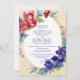 Aménagement floral aquarelle de fleurs bleues/violettes profondes complétées de fleurs rouges avec cadre ovale or. Arrière violet profond avec fleurs rouges (arrière - plan d'aquarelle rouge profond en option). Toutes les couleurs de type et d'arrière - plan sont personnalisables.