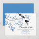 Notre carte d'annonce de mariage élégante et moderne "save the date" d'automne est la touche de classe parfaite pour annoncer votre mariage à vos amis et à votre famille. Notre carte "save the date" élégante aux oiseaux amoureux présente un couple d'oiseaux amoureux assis sur une branche avec des feuilles bleues sur fond blanc avec un dos à motif de feuilles assorti. Visitez notre boutique pour voir les timbres-poste, les autocollants et les aimants "save the date" assortis. Ce design est disponible en plus de 12 choix de couleurs dans notre boutique et est parfait pour une annonce de mariage d'automne.