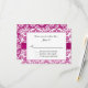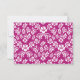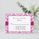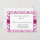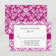 Élégante invitation de mariage florale, avec un motif damassé de fleurs de lys blanches sur fond violet rose, des graphiques d'un ruban de satin violet rose qui passe sous une zone de texte blanc encadré de rose. Texte noir personnalisable pour votre jour spécial. Des produits assortis sont disponibles.