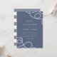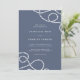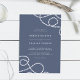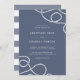 Le design élégant de la faire-part de mariage côtière comprend les détails de votre mariage en lettres blanches sur un arrière - plan bleu-gris ardoise, accentué aux coins avec des boucles de corde nautique tressée. Les invitations se retournent vers de larges bandes nautiques.