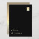 Simple, moderne, minimaliste faire-part de mariage noir tendance avec un monogramme en faux or sophistiqué au coin supérieur droit - des deux côtés de la carte.