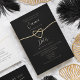Annoncez votre amour avec une élégance intemporelle en utilisant notre faire-part de mariage noir minimaliste. Amélioré avec un coeur de corde dorée romantique et un script de calligraphie manuscrit branché, il est un parfait mélange de modernité et de sophistication. Préparez-vous à votre journée spéciale avec une invitation qui en dit long sur votre histoire d'amour, promettant une célébration inoubliable remplie de romantisme et de joie.