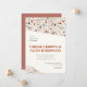 Ce faire-part de mariage moderne présente les détails en pierre de terrazzo du moment et une typographie inspirée du milieu du siècle, ce qui en fait un excellent choix pour un musée d'art ou un lieu moderne du milieu du siècle et un couple sans chichis, branché et dans l'air du temps qui se marie. Une palette de couleurs de nuances inspirées du désert, de crème, de blush, de mauve, de rouille et de bleu marine, donne une impression neutre tout en étant pleine de personnalité.