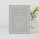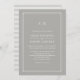 Élégant, simple et formel, notre faire-part de mariage monogramme intemporel en gris-beige neutre comporte une bordure géométrique noire encadrant vos détails mariages en lettrage classique, surmonté de vos initiales, monogramme ou duogramme. Le texte modèle dans cette version est élaboré avec le libellé pour la mariée et le marié accueillant le mariage, avec les parents ou les familles mentionnés dans la ligne d'introduction.