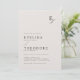 Cette faire-part de mariage présente un design élégant et formel, parfait pour une cérémonie sophistiquée. L'invitation présente une esthétique minimaliste, avec des lignes épurées et un accent mis sur la typographie. Les noms sont affichés en évidence dans une police serif classique, donnant un air de grâce intemporelle à la pièce. L'utilisation d'une simple esperluette ou "à" entre les noms ajoute une touche de simplicité moderne. Le texte est joliment arrangé sur un arrière - plan en papier texturé, ce qui améliore l'apparence formelle globale. Le bas de l'invitation comprend un script de signature de bon goût, indiquant une touche personnelle. Ce modèle, conçu pour un mariage dans un jardin botanique, allie tradition et élégance contemporaine, ce qui en fait un choix idéal pour les couples à la recherche d'une invitation raffinée et élégante.