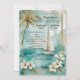 Ce faire-part de mariage présente un thème marin serein avec un yacht naviguant sur des eaux turquoise tranquilles. L'arrière - plan présente un effet d'aquarelle douce dans les tons bleu et vert, créant une ambiance océanique apaisante. Un gracieux palmier et des lys blancs vibrants encadrent le décor, ajoutant charme tropical et élégance. Le design est entouré d'une subtile bordure dorée, ce qui renforce sa sophistication. Idéal pour une fête mariage en bord de mer romantique et aventureuse. Personnalisez le texte concernant les noms et les détails du mariage. Vous pouvez télécharger la carte sur votre appareil mobile ou votre ordinateur. J'ai conçu la carte avec la technologie de l'air.