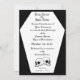 Invitation blanche et noire avec un contour de cercueil qui a des crânes des deux côtés et facultatif "jusqu'à ce que la mort nous fassent partie" sur le dos. Perfectionnez pour beaucoup d'occasions telles que des mariages, des anniversaires, des parties de Halloween, des rassemblements de vacances et des annonces. Disponible dans d'autres couleurs.
