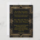 Faire-part de mariage noir & or, grand-Gatsby, recto-verso, monogramme, script de police,