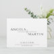 Ces invitations de mariage minimalistes modernes de 7" x 5" comportent des espaces réservés pour les prénoms du couple mariage, la date et l'heure, l'emplacement en lettres noires sur un arrière - plan neutre. Le choix fixe déterminera la couleur de l'arrière - plan.