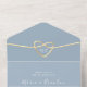 Voici notre élégante invitation de mariage tout-en-un dans une teinte bleue poussiéreuse captivante. Avec les initiales du monogramme de la mariée et du marié à l'intérieur d'un cœur de corde dorée, cette invitation dégage une sophistication moderne et un charme intemporel.