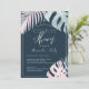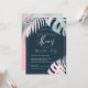 Faire-part de mariage PixDezines, mettant en vedette des palmiers roses et argentés et des feuilles de monstera accentués d'une police manuscrite en platine. La conception dynamique de PixDezines vous permet de modifier la couleur de fond, les polices et les couleurs des polices, ainsi que de copier et coller n'importe quel élément.... Facile à personnaliser.