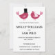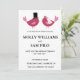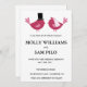 Inséparable faire-part de mariage a deux petits inséparables avec du lettrage noir. Vous pouvez customiser la couleur de ce faire-part de mariage à la couleur de votre choix et customiser les détails.
