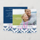 Un monogramme élégant et des noms design avec une photo Fiançailles et un motif bleu et blanc de Navy Damas créent ces invitations uniques de mariage. Monogramme photo Blue Damask Faire-part de mariage. Conception et mise en page par Elke Clarke ©2010. Exemple de photo seulement. Remplacez par le vôtre. Customisez avec votre propre photo, vos noms, votre monographie et votre texte faire-part de mariage. Pour plus d'options d'édition, sélectionnez "CUSTOMISER" pour modifier l'espacement, la couleur des arrière - plans et des polices et le style des polices. Les Damas et les photos sont autorisés à être utilisés.luxuryweddinginvitations@gmail.com